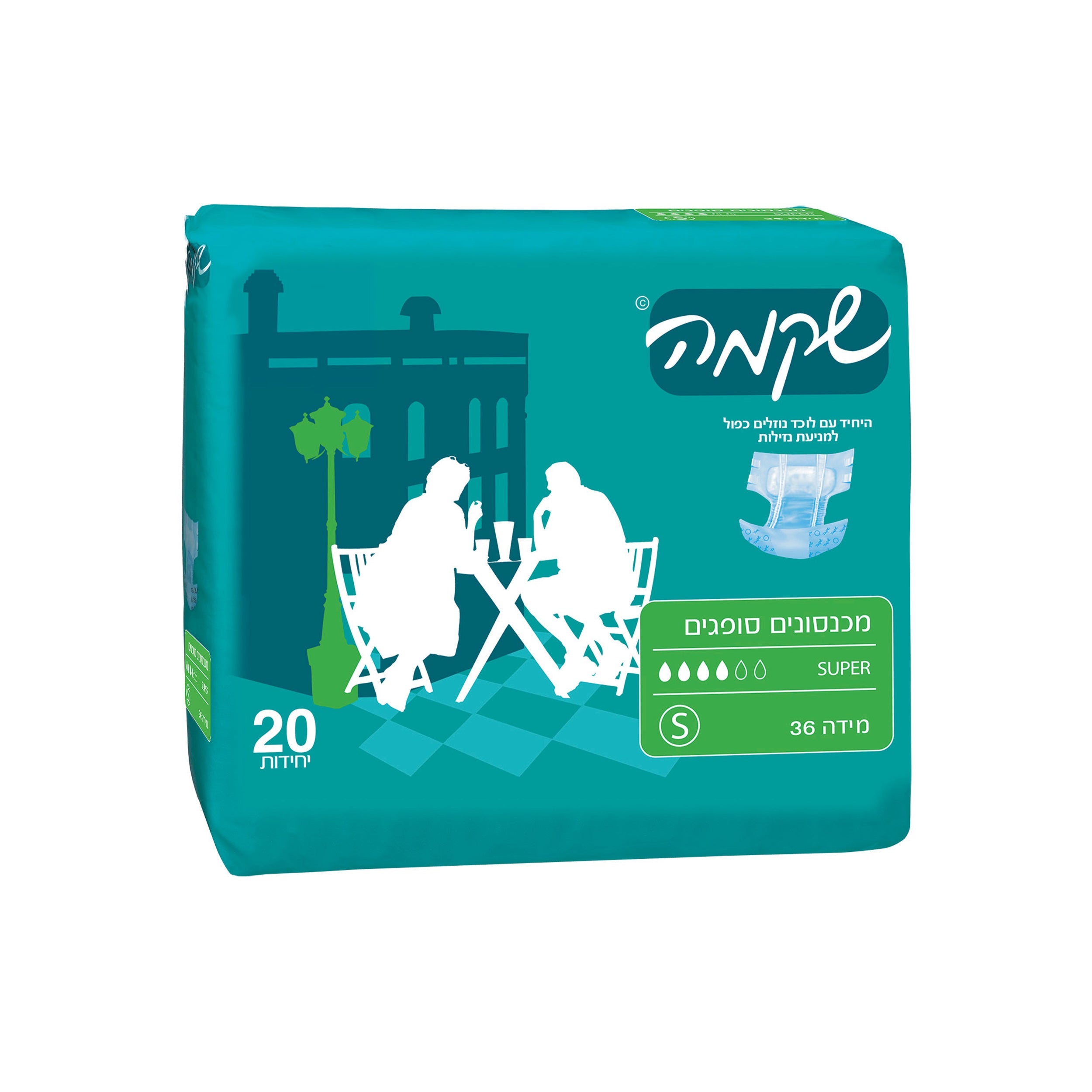 מכנסונים (חיתולים) גזרתיים יום - סופר שקמה. בעלי כושר ספיגה של עד 6 שעות. למכנסונים שכבות פנימית וחיצונית נושמות ואווריריות המסייעות במניעת גירויים ולוכד נוזלים כפול המונע נזילות. המכנסונים מגיעים עם מנגנון סגירה רב פעמית. S - מידת מכנסיים 36 כמות באריזה 20 יח'.