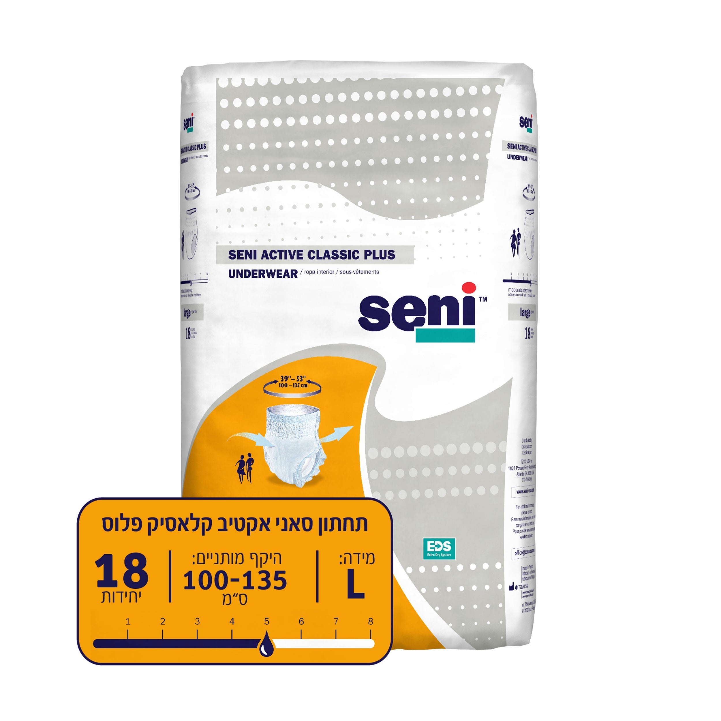 תחתונים נושמים המעניקים תחושת אווריריות לעור, רכים, עדינים ואלסטיים להתאמה אידיאלית לגוף בעלי קירות הגנה מפני נזילות מהצדדים. מידה L כמות באריזה 18 יח' היקף מותניים 100-135 ס"מ, סאני הוא מותג בינלאומי הנמכר ביותר מ-80 מדינות ומציע מגוון פתרונות ספיגה.