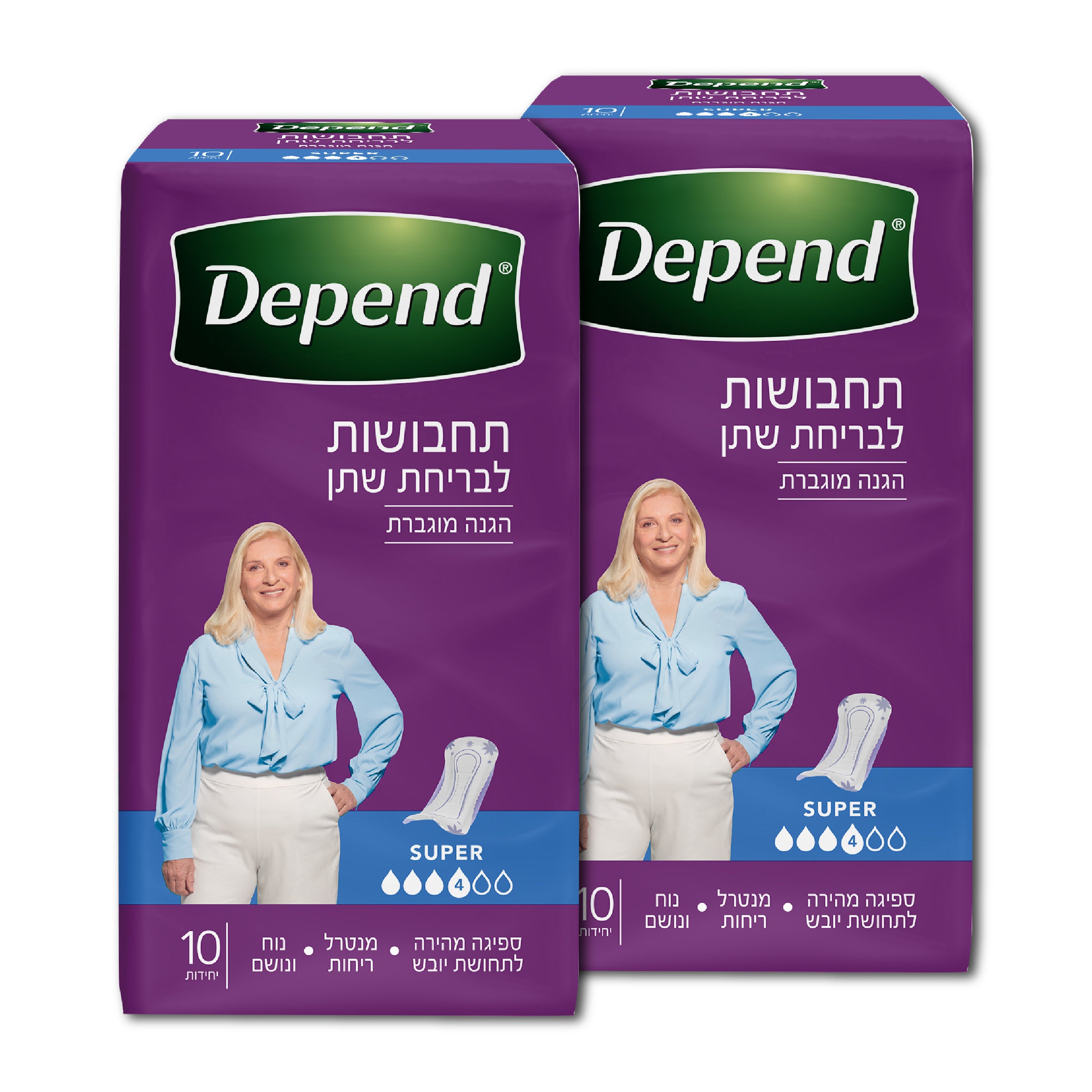 Depend | תחבושות לבריחת שתן סופר מארז 2 אריזות